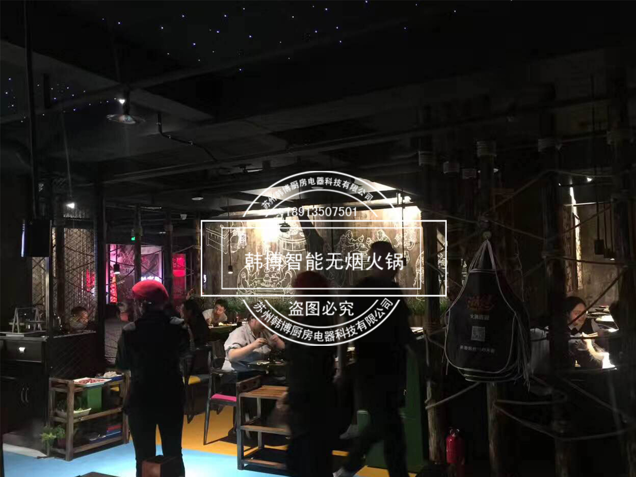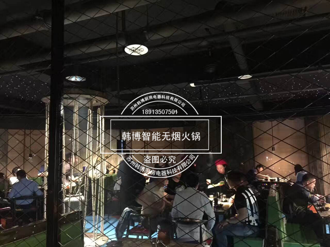老板為了顧客著想,特意定制了韓博智能無煙火鍋設備油煙凈化系統,吸油煙效果特別好,食客也是稱贊有加。韓博科技專業研發、生產、銷售無煙火鍋、無煙火鍋桌、無煙火鍋設備、無煙燒烤桌、無煙燒烤設備等火鍋店設備。