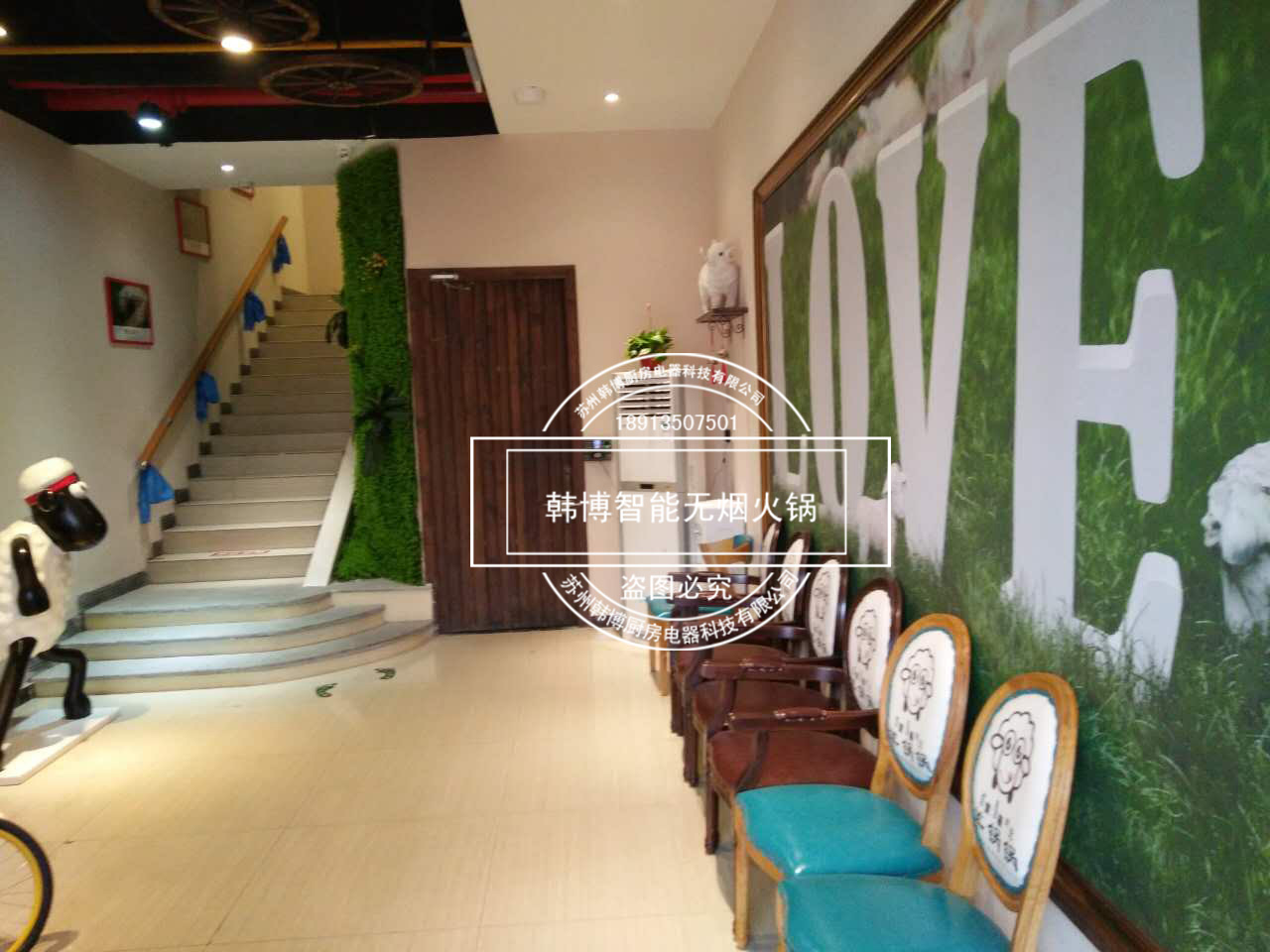 羊鍋鍋火鍋在裝修上也是很有個性,寬曠明亮的客廳里高懸著一盞盞簡約又時尚的吊燈,綻放出耀眼奪目的光芒,給餐廳營造出了浪漫的氛圍。還選用了韓博新一代智能無煙火鍋設備,吸油率高達99%,去除了油煙味。